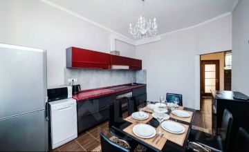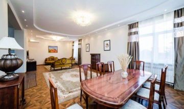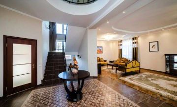 - гостиная (3 дизайнерских диванчика + ТВ, большой стол для празднования)