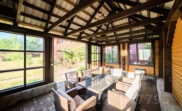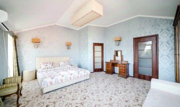Центральные коммуникации, полы с подогревом, оборудован всей мебелью и бытовой техникой, кондиционирование, интернет и спутниковое ТВ. На участке проведены ландшафтные работы, высажены цветы и плодовые деревья, зона барбекю.