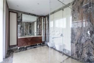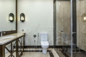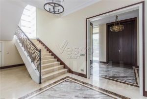 Особняк построен в 2 уровня, где 4 спальни, гостиная с камином и вторым светом по центру украшенным эксклюзивной люстрой освещающей оба этажа. Кухня-столовая с выходом на террасу и задний двор. Второй этаж отдан приватной зоне с широкими возможностями хранения. Выход на террасу. При строительстве и отделке внутреннего пространства использовались дорогостоящие и качественные материалы: гранит, дерево, эко краски. Ванные комнаты оборудованы сантехникой премиального качества.