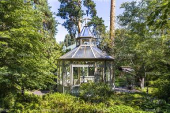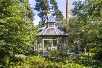 Дом предлагает премиальную отделку "Под ключ" с мебелью на трех этажах, включая 4 спальни, просторную гостиную с кухней и столовой, а также кабинет. В дополнение к основному дому, имеются дополнительные постройки, такие как СПА-комплекс с кинотеатром, хамамом, дровяной баней и бассейном, а также дом для персонала и гараж на 4 автомобиля в контуре дома.