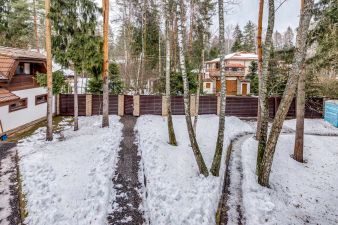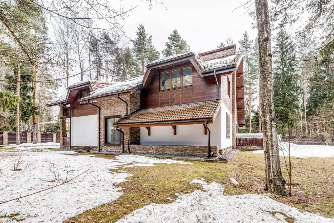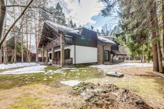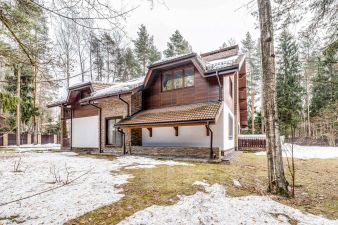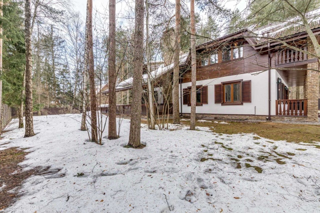 Красивый дом в стиле Шале на лесном участке с вековыми соснами расположен в дальней части поселка, в 20 метрах от выхода в лес. На участке отдельно стоит гараж на 2 машиноместа с квартирой для персонала. Основной дом - Шале, круглогодично отапливается. Внутри разведена электрика и установлена сантехника, стены готовы под покраску, полы со стяжками, утеплитель на потолках. Крыша из натуральной черепицы. Цоколь сухой, с окнами. Вокруг дома сделана качественная гидроизоляция и дренаж. Идеальная правильная форма участка. В доме две террасы: на втором этаже - в мастер-спальне и на первом этаже - выход из столовой. Отделка натуральным деревом (кедр) с лаком - в идеальном состоянии +штукатурка +камень.