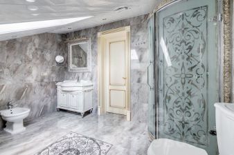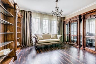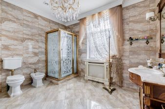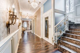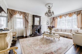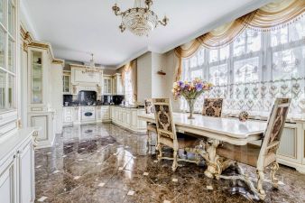 Предлагается к продаже 3-х уровневый дом площадью 362 м2 с лифтом и дизайнерской отделкой в элитном коттеджном поселке Трувиль. Дом укомплектован мебелью и техникой европейских брендов. Состояние дома близко к идеальному, в доме практически не жили. На территории поселка расположен великолепный каскад озер с водопадами и мостиками общей площадью 2 гектара. Вокруг озера создана прогулочная зона, все дорожки вымощены натуральным камнем, выполнено благоустройство. На участке расположен также гостевой дом площадью 150 кв.м. Общая площадь строений на участке - 512 кв.м.