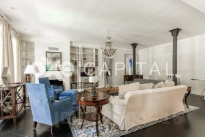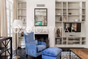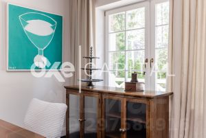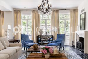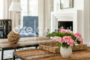 Интерьер в нормандском стиле. Излишне декоративный облик дома был нивелирован лаконичным и изысканным интерьером, в котором работают холодный нейтральный фон и нежная палитра цветов гортензии.