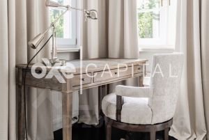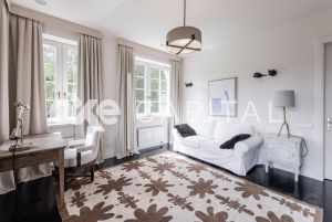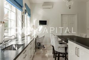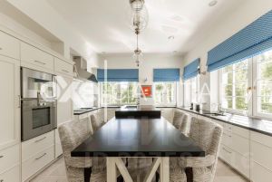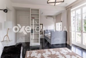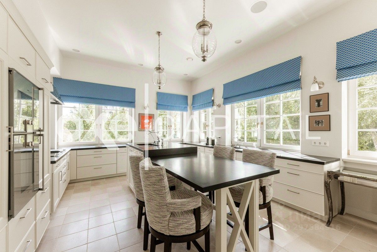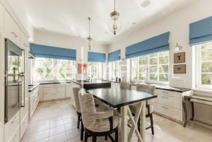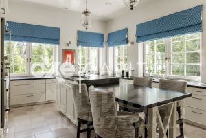 На участке дом для персонала 200 кв.м с 3-х комнатной квартирой. Гараж на 2 м/м, навес на 2 м/м. Беседка открытого типа с водой . Детская площадка с батутом. 1 этаж: холл, с/у, гардеробная, кухня, гостиная с выходами на 2 открытые террасы, игровая, постирочная, рабочая кухня, с/у; 2 этаж: холл, 3 спальни, в каждой своя ванная и балкон, гардеробная при главной спальне; 3 этаж: холл, с/у, кабинет, гостевая спальня с с/у, кинотеатр, ещё кабинет /гостиная (можно по разному использовать). Гараж: отдельностоящий 2 м/м.
