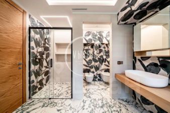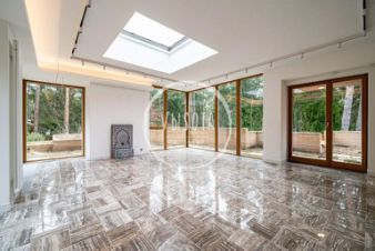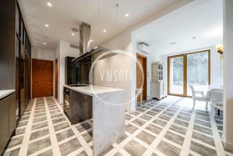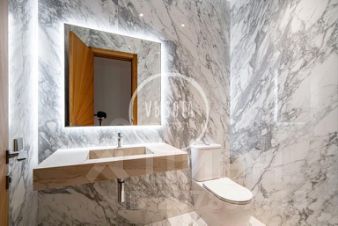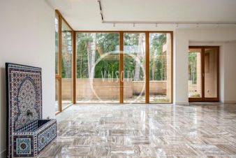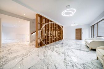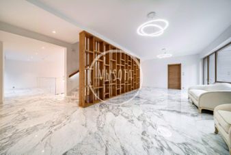1-й этаж: холл, просторная гостиная-столовая с выходами на террасы, столовая, кухня, кладовая, гостевой с/у, кабинет с с/у, TV комната, SPA-зона с бассейном, сауной, хаммамом, душевой, с/у, тренажерным залом.