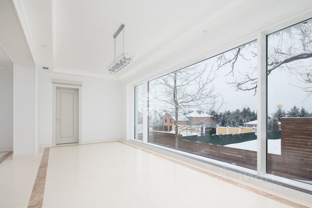 Новый дом в Усово-8, охраняемом камерном коттеджном посёлке. Здесь есть свой фитнес-центр с бассейном, сауной, хамамом и тренажерным залом, детская площадка.