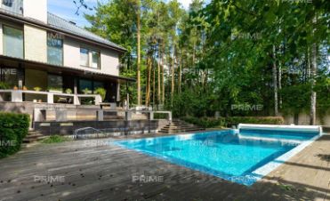 В поселке "Осень-1", всего в 5 км от МКАД по Сколковскому шоссе, расположено роскошное домовладение площадью 600 кв.м на просторном участке 25 соток. Этот лесной участок прекрасно оформлен ландшафтным дизайном.