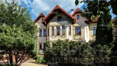 Загородный особняк в стиле русского модерна площадью 2009 м построен на просторном участке 0,9 гектара с собственным озером.