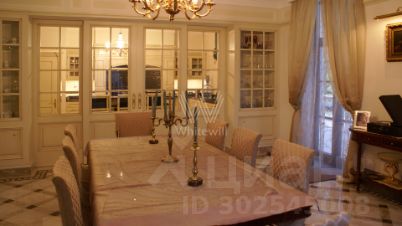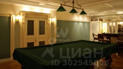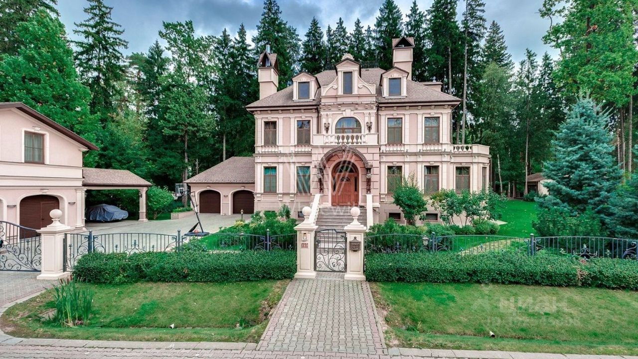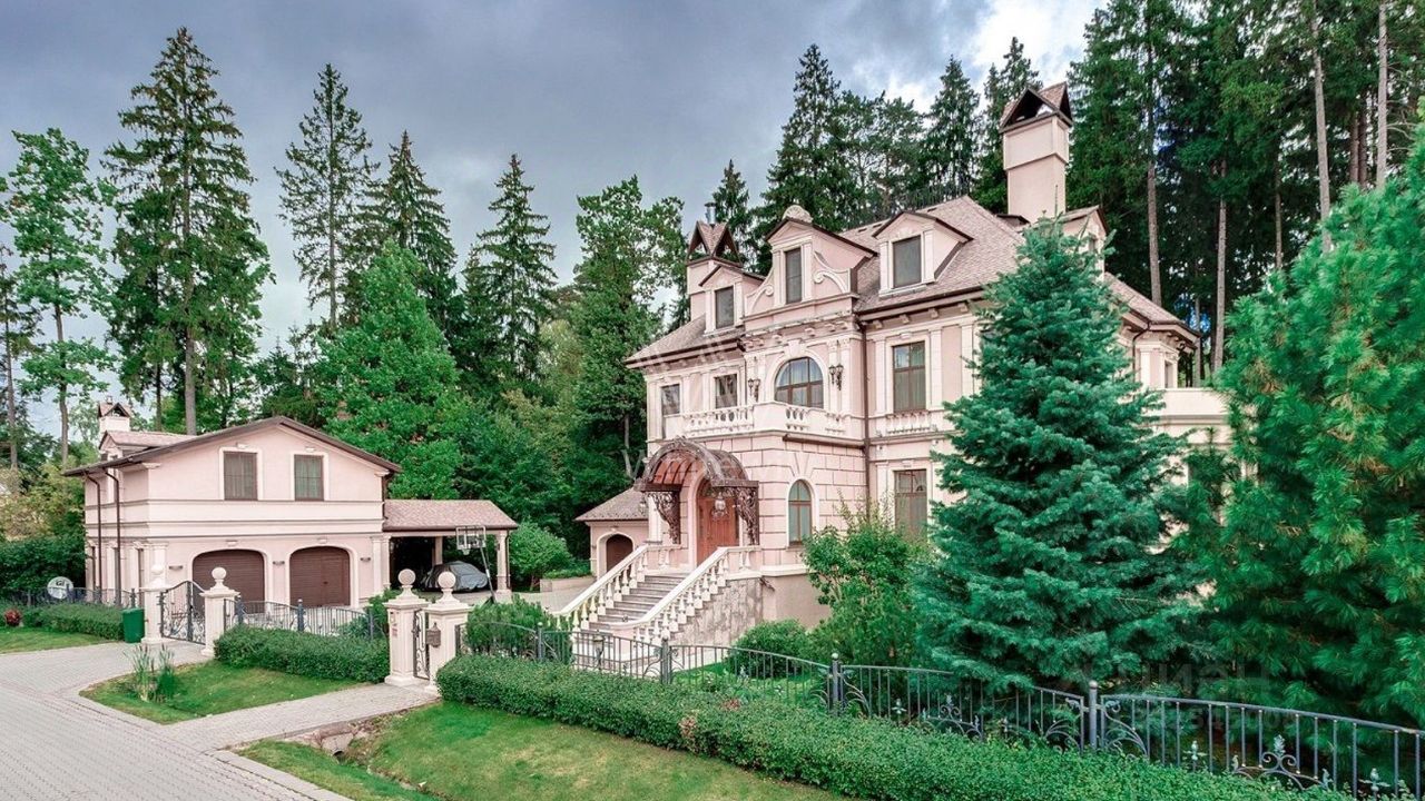 Николино. Загородное поместье в классическом стиле украшено балюстрадой, резными наличниками и декоративным карнизом. Внутри выполнена отделка в классическом стиле с использованием премиальных натуральных материалов. Кухня и санузлы оборудованы, мебель подобрана под интерьер. На цокольном этаже расположен бильярд и сауна. На первом этаже общие зоны — кухня, гостиная, каминная. На втором этаже спальни и кабинет. Третий этаж занимает комната отдыха. Общая площадь дома 822 м². На лесном участке 15 соток построили гараж для двух машин, летнюю беседку, выполнили ландшафтный дизайн.