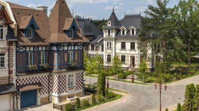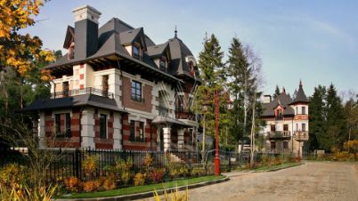 Трувиль. Резиденция во фламандском стиле площадью 370 м² расположена на уютном лесном участке 14,8 сотки с соснами. Фасад главного дома выполнен по старинным образцам с большим вниманием к деталям — облицовка из красного клинкера дополнена рустовкой, резным карнизом, балюстрадой и шпилем на крыше. Интерьер резиденции выполнен в классическом стиле в светлых тонах. Парадная лестница дополнена лифтом. Кухня и санузлы оборудованы встроенной техникой.