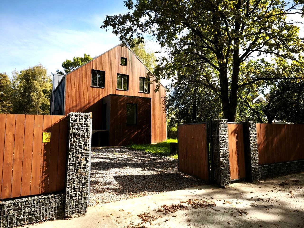 - Автоматические ворота, парковка вымощена камнем