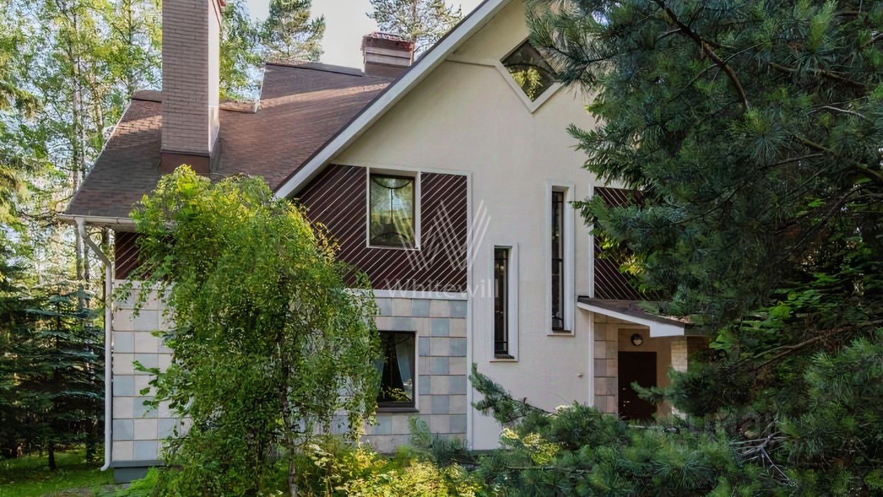 Грибово. Загородный дом площадью 600 м² расположен на лесном участке 22 сотки. Фасад в европейском стиле облицован бежевой штукатуркой и плиткой. Из окон открываются виды на лесной массив. Лаконичный интерьер оформлен в кремовых оттенках. В коттедже разместили 4 спальни, кухню-столовую-гостиную с камином и сауну. На участке можно выполнить ландшафтный дизайн, обустроить беседку и зону барбекю.
