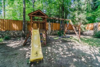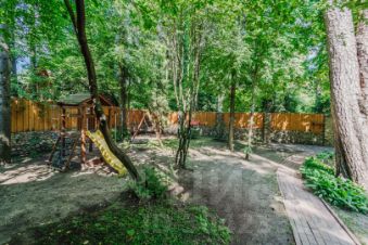 Надёжный и функциональный кирпичный дом с тремя спальнями, просторной гостиной с камином и оборудованной кухней расположен на приватном участке. Парковка с навесом на два автомобиля вымощена брусчаткой. Для детей на участке установлена детская площадка. Этот дом идеально подойдет как для постоянного комфортного проживания, так и для полноценного отдыха за городом.