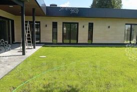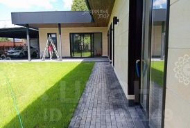 У дома эксплуатируемая кровля, окна алюминиевые стеклопакеты, фундамент утепленная плита. В доме холл, кухня-столовая, гостиная (объединены в общем пространстве), три спальни с выходами на патио, четыре санузла, гардеробная, бойлерная. Дом предлагается с отделкой "под ключ: потолки- гипсокартон с покраской, стены с покраской, полы- паркет, межкомнатные двери.