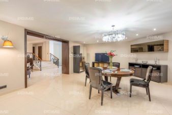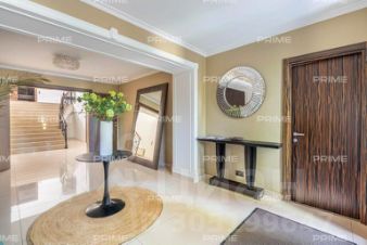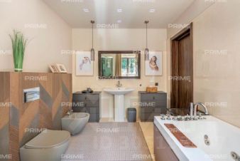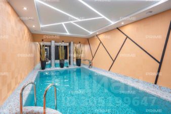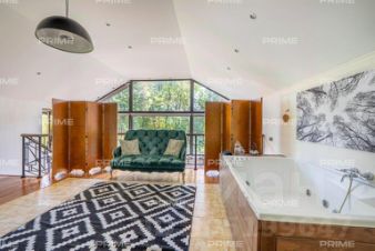 Внутренняя отделка коттеджа выполнена в стиле минимализма с элементами модернизма, что придает дому элегантный и современный вид. Просторные и светлые комнаты, высокие потолки и продуманное освещение создают уют и комфорт. В доме предусмотрены все необходимые помещения: кухня, столовая, каминный зал, гостиная, спальня с гардеробной, гостевая спальня и кабинет с балконом. Для вашего отдыха и здоровья здесь есть спортзал, сауна, комната отдыха и бассейн с водопадом.