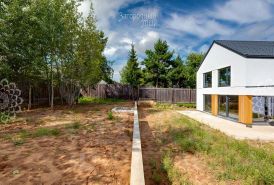 Участок 10 соток, имеет каскадную конфигурацию. Сделаны монолитные работы, мощеные дорожки вокруг дома.