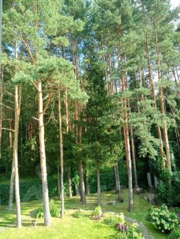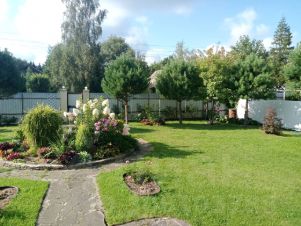 Перед усадьбой гостевой паркинг на два авто, на участке (12 соток) - одноместная автостоянка, оборудованная удобным хозблоком для хранения инвентаря. Участок примыкает к сосновому лесу, имеет ухоженный плодоносящий сад, красивые цветники, декоративные деревья и кустарники разных видов, сортов и расцветок, а также оборудованную площадку для отдыха с качелями, садовой мебелью, навесом от солнца и дождя, местом для мангала, водопроводом и электропроводкой. Задняя калитка выходит в сосновый лес на смотровую площадку и прогулочную дорожку вокруг большого пруда, и обрамленные соснами и декоративными насаждениями. В грибной сезон от калитки до первого гриба (опята, лисички, белые, подберезовики) около пяти минут ходьбы. Рыночная стоимость одной сотки в нашем поселке в зависимости от его расположения, ухоженности, необходимости сносить и вывозить старые постройки варьируется от 1 050 000 до 1500 000 р.