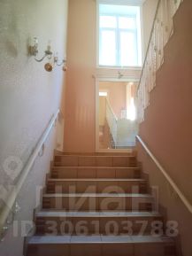 Широкая межэтажная лестница с большим зеркалом и окном в лес облицована керамогранитом и имеет такое же кованое ограждение, как и балкон.