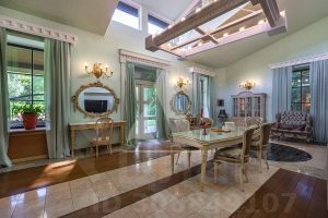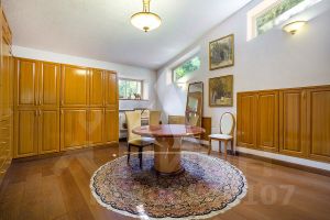 2-ой уровень: галерея, пять спален, три ванные комнаты, гардеробная, построчная. 1 этаж: холл, огромный каминный зал, столовая, кухня, летняя кухня, спортзал, сауна с джакузи, домашний кинотеатр с баром, гараж с комнатой для персонала, бойлерная, три ванные комнаты, терраса; 2 этаж: галерея, пять спален, три ванные комнаты, гардеробная, построчная. Гараж: в контуре дома