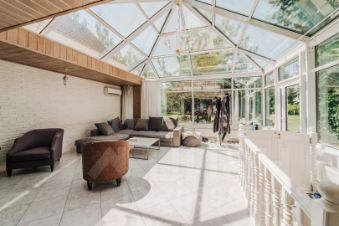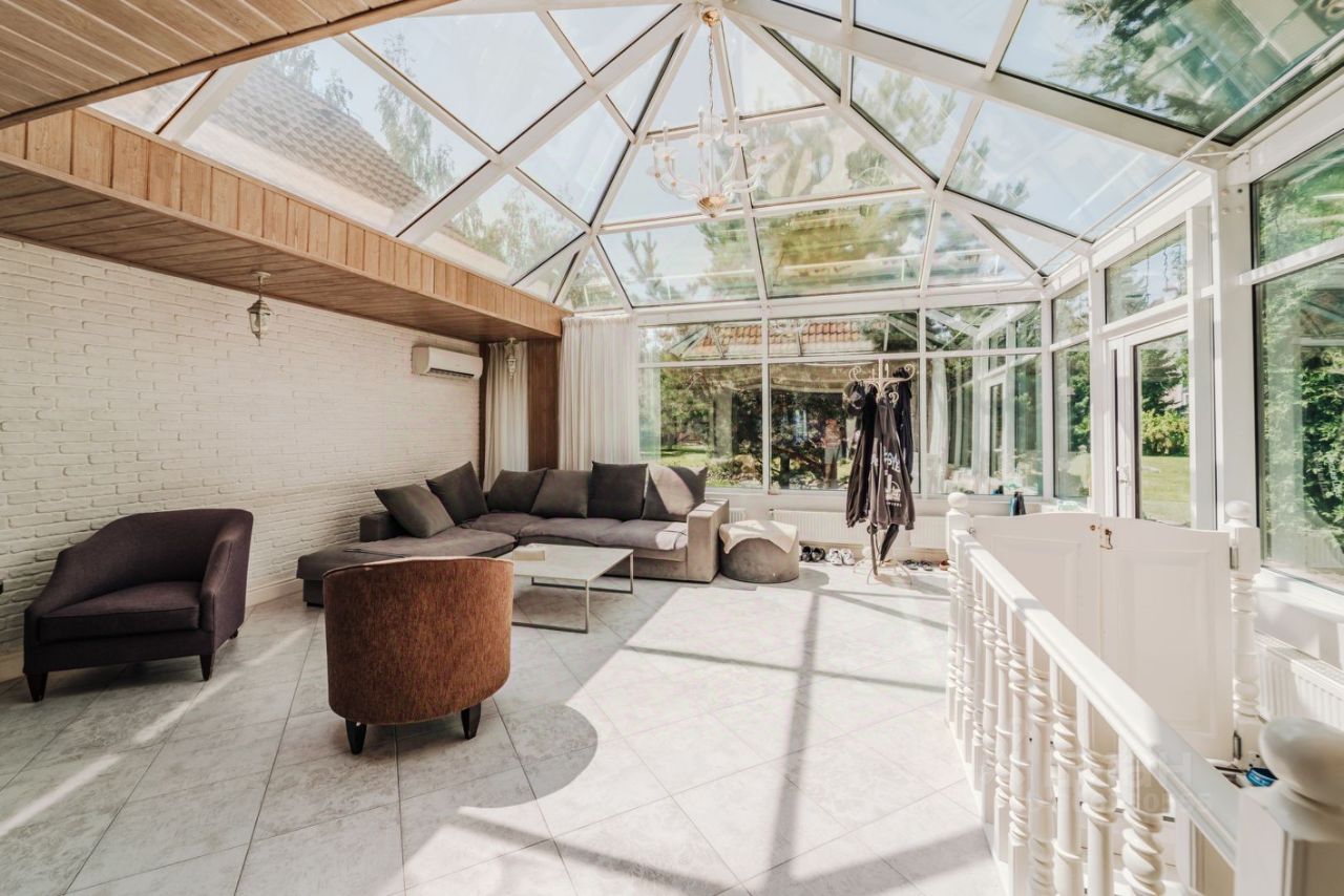 Основной дом очень светлый, красивая зона отдыха с панорамным остеклением, кухня с кладовой. В доме 4 спальные комнаты, с гардеробными и ванными комнатами, в цоколе, располагаются комнаты для хранения. Дом обставлен красивой, дорогой мебелью, техника премиальных брендов.
