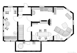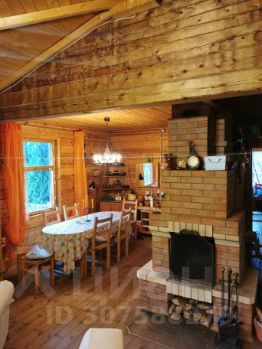 Основной дом с мансардой, полностью из бруса, площадью 120кв м, оформлен под прописку. 3 спальни (на мансардном этаже), просторная гостиная с печью, камином (изготавливались по отдельному дизайн-проекту из высококачественных материалов) и веранда. Строился в 2001 году, просторный эркер достраивался в 2004. Регистрация в Росреестре как жилой дом с правом прописки.