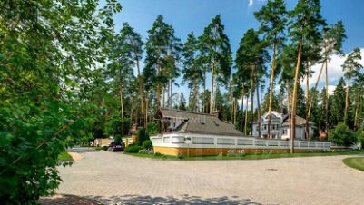 Коттон Вэй (Никологорское). Загородный дом площадью 616 м² по проекту Dream построен на участке 12,7 сотки у леса. Фасад здания с панорамным остеклением выполнен в современном стиле, облицован молочным камнем и декорирован подсветкой. В коттедже без отделки можно реализовать индивидуальный дизайн-проект, отвечающий каждой потребности. Внутри спланировали несколько спален, гостиную, кухню, гараж на 3 машины и просторную террасу 76 м², которая подходит для размещения зоны барбекю. На участке выполнен ландшафтный дизайн, засеян газон и вымощены дорожки.