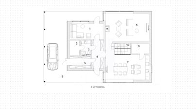 1-й уровень: холл, котельная-кладовая, санузел, хаммам, спальня, гостиная, кухня-столовая, кладовая, навес.