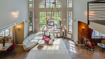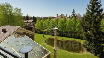 В отделке интерьера использовали натуральный массив дуба, сосну, оникс, сланец и мозаику. Дом обставили дизайнерской мебелью, оборудовали санузлы и светлую просторную кухню. В резиденции подключена система "умный дом" для контроля отопления, освещения и других параметров. Из окон спален открывается вид на ровную гладь декоративного пруда. Дополнительно на территории построили дом персонала с гаражом для двух машин и русскую дровяную баню.