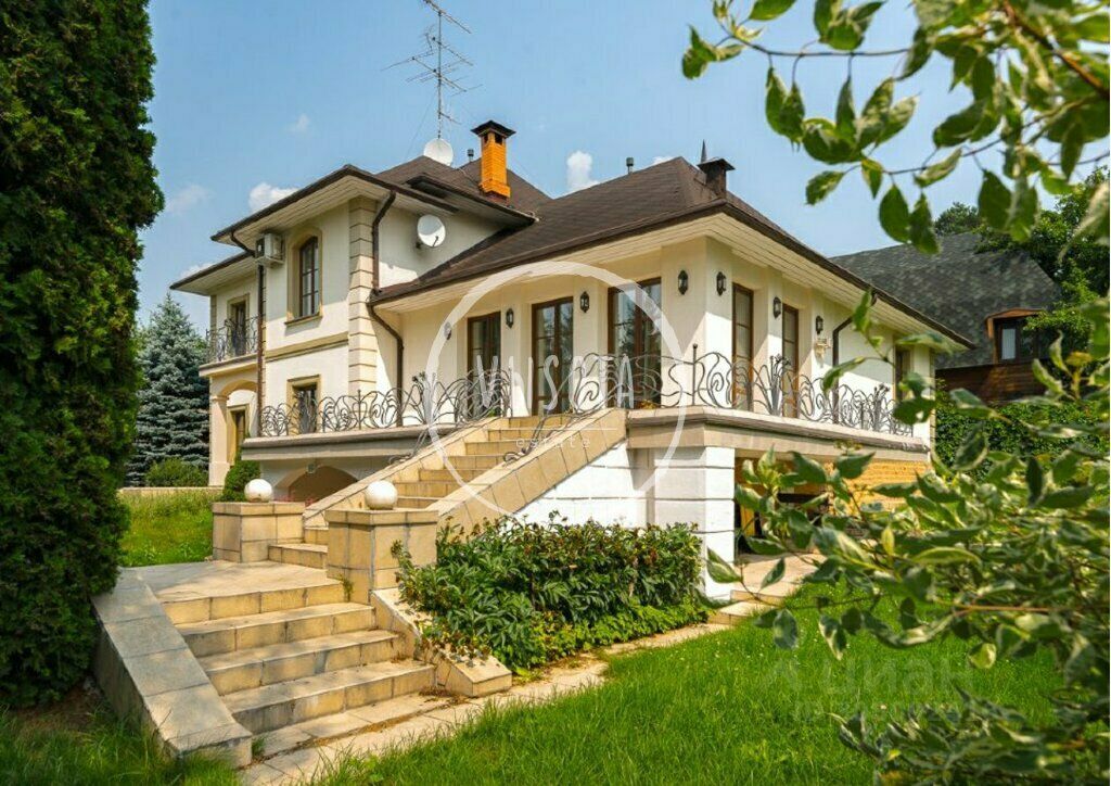 Предлагается к продаже дом, выполненный в классическом стиле, с балконами, просторной террасой, широкой лестницей ведущей на террасу, расположен на участке площадью 21.5 сот среди величественных туй, голубых елей, красивых лиственных деревьев и декоративных кустарников, живописных цветников. Комфортная внутренняя планировка дома, светлые интерьеры, удобная мебель, гостиная со светлым камином, просторная столовая с овальным столом, выполненным из дерева и интересными стульями с мягкой светлой обивкой, мраморная лестница с красивыми кованными перилами, зеркала в живописных рамах - все гармонично и привлекательно. Предложение для тех, кто хочет жить в окружении подмосковной природы, вдали от шумной столицы.