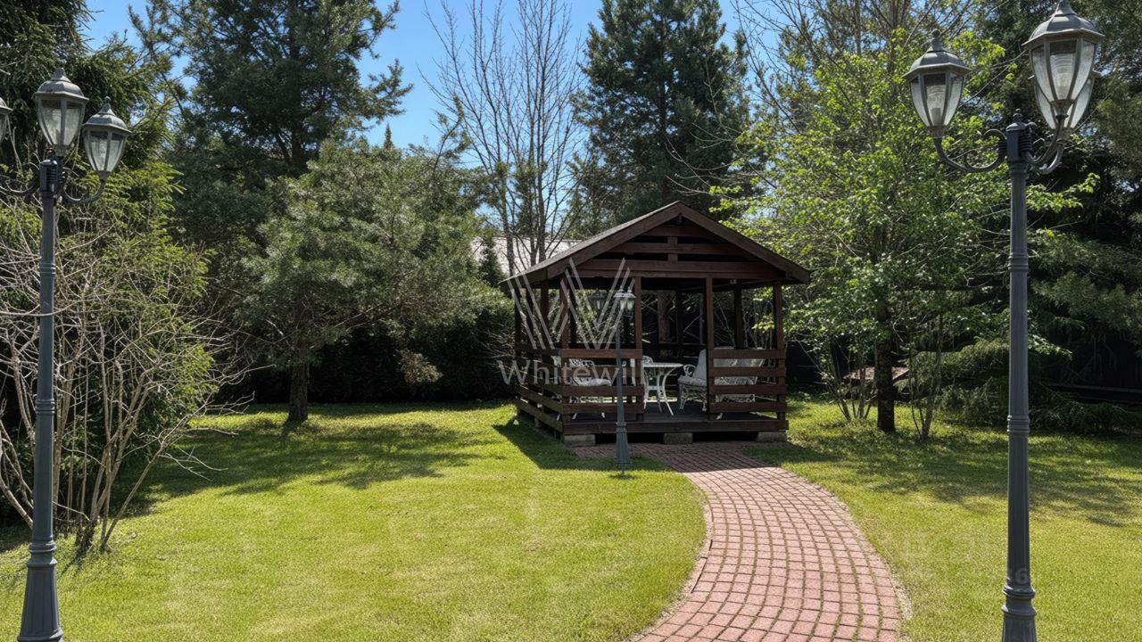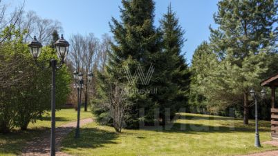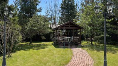 Горки-8. Загородный дом площадью 250 м² построен на просторном участке 30 соток с лесными деревьями. Бревенчатый фасад здания выполнен в стиле "шале". В отделке интерьера сохранена фактура дерева, создающая атмосферу уюта. В резиденции разместили 4 спальни, гостиную, кухню-столовую и террасу. На участке выполнен ландшафтный дизайн, вымощены дорожки, установлено уличное освещение и обустроена беседка.