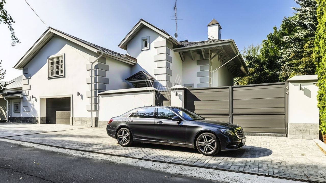 Шульгино-4. Загородный дом площадью 618 м² расположен на прилесном участке 12 соток. Фасад здания облицован светло-серой штукатуркой, декорирован подсветкой и плиткой под камень по цоколю. Лаконичный интерьер так же выдержан в серых оттенках в сочетании с фактурой дерева и камня. В резиденции разместили 3 спальни, гостиную с камином, переходящую в кухню, каминный зал, бильярдную и крытую террасу. В контуре дома предусмотрен гараж на 2 машины. Рядом построен гостевой дом с бассейном, баней и зоной барбекю. На участке выполнен ландшафтный дизайн.