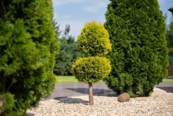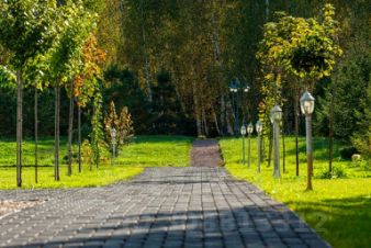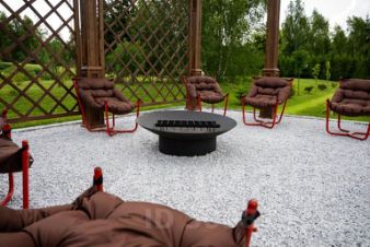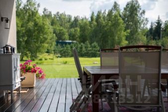 Участок огорожен по периметру высоким забором, который оформлен соснами, елями, туями и можжевельниками. Продуманный ландшафтный дизайн, ощущение простора с панорамным видом с веранды. Собственная мини-горка, сосновый бор, березовая роща, дорожки по периметру: можно гулять, не выходя за участок, плодовые растения и кустарники, много места для занятий спортом и дорожек для бега, в зимний период оформление катка и зоны катания на тюбингах, детская площадка, пергола с костровой чашей, зона барбекю с мангалом.