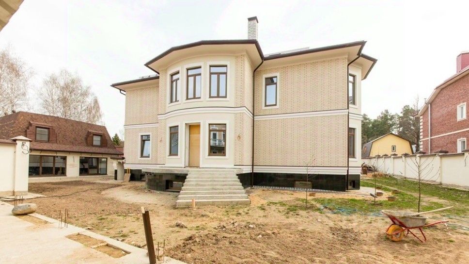 номер объекта: 013758. На продажу предлагается дом на Рублево-Успенском шоссе, в 10 км. от МКАД, в коттеджной застройке Жуковка. Дом 4-х уровневый, кирпичный, площадью 850 м.кв., участок - 15 сот. Есть отдельностоящий гараж (3 м/м). Все коммуникации центральные. Под чистовую отделку. В цоколе: бильярдная/тренажерная, винный погреб, холодная кладовая, с/у, постирочная, котельная. На первом этаже: холл, кухня, столовая с выходом на участок, гостиная, гостевая спальня, с/у. На втором этаже: хозяйская спальня с гардеробной и ванной комнатой, спальня с гардеробной и с/у, 2 спальни с с/у. В мансарде: зона отдыха с мини-кухней, кальянная, с/у. На участке: гараж на 3 м/м с квартирой для персонала на 2-м этаже с 2-я спальнями. фундамент под беседку или СПА-блок.