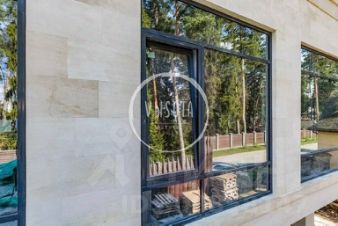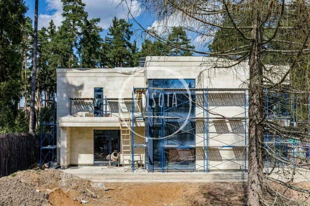 Строящийся загородный дом в стиле "минимализм" расположен на лесном участке. Лаконичный фасад, отделанный натуральным камнем, с панорамным остеклением. В доме спланировали 4 спальни, гостиную с камином и вторым светом, кухню-столовую, просторные террасы, сауну с комнатой для отдыха. На участке выполнен ландшафтный дизайн, выложены дорожки и уложен газон и расположен отдельно стоящий гараж на 2 м/м с двумя квартирами для персонала.
