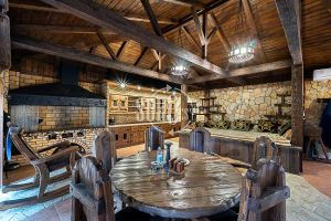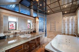 Лот d4041 Эксклюзив! Предлагается дом по Рублево-Успенскому ш. на 7 км от МКАД. Площадь дома 593 кв.м. на участке 20 соток(ИЖС). Дом полностью меблирован и готов для проживания. На участке гостевой дом со спортивным залом, кухней и 2 спальнями, дом для охраны, русская баня с купелью и зоной отдыха с камином, гараж на 2 м/места и парковка на 8 автомобилей. Беседка с барбекю.