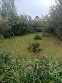 Ровный, правильной формы участок 8,9 соток покрыт газоном. На нем произрастают несколько плодовых деревьев и 2 сосны.
