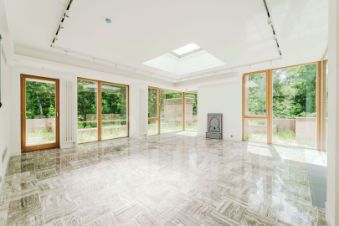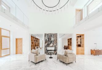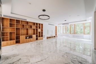 Этаж 1: прихожая, холл, гардеробная, гостевой с/у, гостиная с камином, кухня-столовая с выходом на летнее патио, гостевая спальня, спа-зона с сауной и бассейном (20 м) и душевой