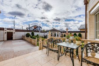 На участке отдельно стоящий гараж на 2 машины с комнатами охраны и помощников по хозяйству 100 кв.м, беседка- барбекю. Участок 20 соток с ландшафтным дизайном с красивым классическим фонтаном из розового мрамора, проведенным автоматическим поливом и освещением. Много декоративных растений, цветов, плодовых деревьев.