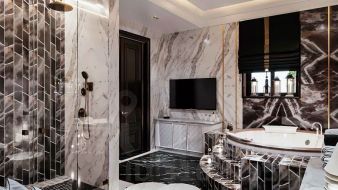 Этаж 1: Холл, кухня, столовая, каминный зал, второй свет, бильярд, кабинет, SPA-студию, котельная в доме. Гараж на два автомобиля.