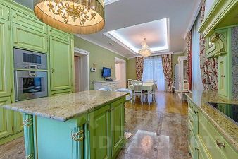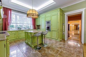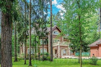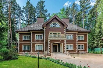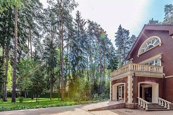 Цокольный этаж занимает кухня для персонала. На большом земельном участке выполнен ландшафтный дизайн.