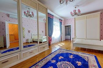 На территории резиденции также построен гараж на 2 м/м, на втором этаже которого находится квартира для персонала с двумя спальнями, кухней и санузлом.