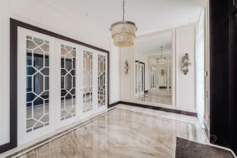 Новый дом с отделкой под ключ, выполнен в современном ар-деко, что придало интерьеру уверенного композиционного прочтения мейнстрима "Олд мани". Фактурные колонны, огромные зеркала, распашные двери с орнаментом, второй свет в гостиной, натуральные дерево и камень, хрустальные люстры нарочито больших размеров и т.д. Основная цветовая гамма контраст белого или кремового с венге. Продуманная, комфортная планировка оставит приятное впечатление.