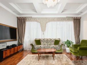 Этаж 1: гостиная, столовая, кухня, кабинет, с/у, спальня с гардеробной и с/у