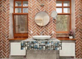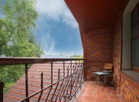 Дом с 4 спальнями, кабинетом, просторной гостиной, столовой и СПА зоной. Фасад дома в немецком стиле фахверк с облицовкой голландским клинкерным кирпичом. Кровля выполнена из натуральной керамической черепицы немецкого производства. Деревянные стеклопакеты высокого качества. На территории участка есть квартира для персонала, гараж, летняя кухня.