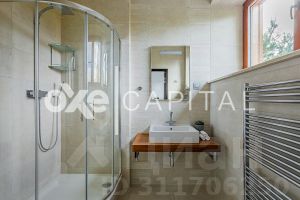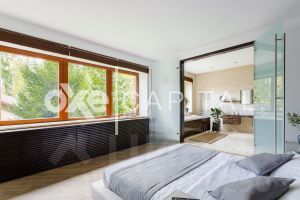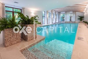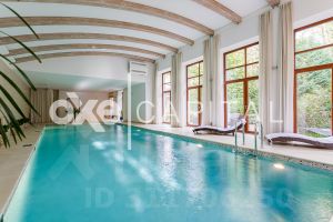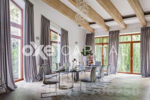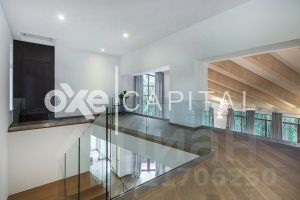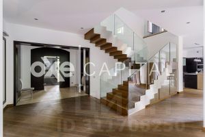 Здание выполнено в современном европейском стиле, с минималистичным дизайном, который обеспечивает интуитивное восприятие и функциональность. Здесь предусмотрено все необходимое для комфортного проживания и отдыха: четыре спальни, зона СПА, бассейн, большая гостиная с камином, винный погреб, лифт и квартира для обслуживающего персонала.