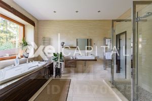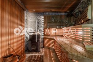 Круглосуточная охрана обеспечивает безопасность жителей. Цоколь: дровяная баня с соляными плитами, купель, душ-шарко, комната отдыха, бильярдная, винный погреб, электрощитовая, кладовая, котельная, постирочная, технические помещения, лифт. 1 этаж: 2 гардеробные, лифт, с/у, гостиная 140 кв.м., кухня - столовая. СПА-зона: бассейн 14,5*4,5 мм, паровая кабина, с/у. Квартира для персонала. По периметру дома несколько уютных террас. 2 этаж: холл, лифт, хозяйский блок: будуар, 2 гардероба, ванная комната, спальня, 3 спальни, ванная комната. Гараж: в контуре дома 2 м/м.