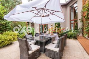 Просторный участок с ландшафтным дизайном. На территории имеется крытая парковка для двух автомобилей. Дом подключен к центральным коммуникациям.