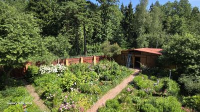 На участке растут плодовые деревья, было завезено много чернозема, есть зона барбекю, гараж на два а/м.