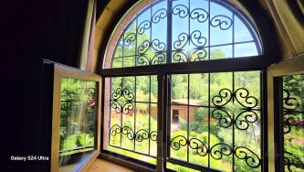 Второй этаж: 3-и изолированные спальни и большая гостиная, с/у. Окна деревянные стеклопакеты, с установленными кованными чугунными решетками, из которых открывается великолепный вид на лес.