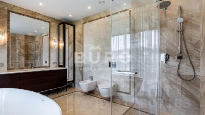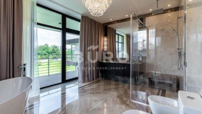 Панорамные окна, огромная площадь остекления и высокие потолки делают особняк невероятно светлым, просторным и уютным. Продуманы функциональные гардеробные. В санузлах установлена сантехника премиальных брендов.